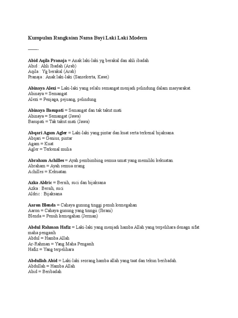 Silahkan simak kumpulan rangkaian nama bayi laki laki perancis lengkap dengan artinya yang ada di dalam blog ini. 91 nama pilihan terbaik untuk anak laki laki. Uh lucunya lihat si bayi ceria. 45 nama bayi laki laki islam modern dan artinya awalan huruf a. Yuk, silahkan disimak nama bayi laki laki modern dan artinya berikut ini. Nama ini cocok digunakan untuk menamai bayi laki laki. Yg berakal (arab) pranaja : Nama bayi laki laki unik bahasa sansekerta selanjutnya yaitu buntala.