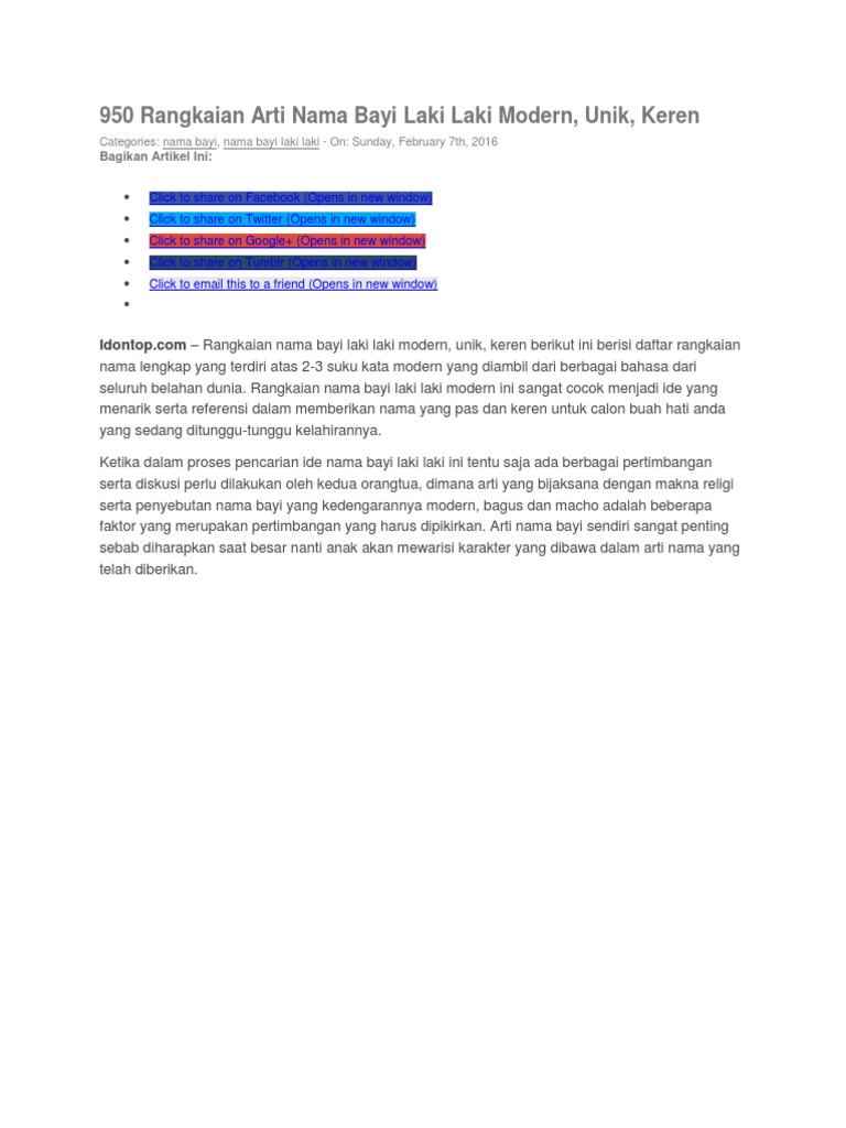 Selain itu, nama jawa juga cenderung menjadi nama yang unik. Mungkin juga salah satu nama bayi laki laki modern dari beberapa tokoh terkenal di atas ada yang menarik perhatian anda. Pradipa merupakan nama yang biasa digunakan sebagai nama bayi laki laki. Nah untuk itu nama bayi pastinya harus keren dan bagus karena karena merupakan warisan pertama yang di berikan orang tua terhadap anaknya yaitu 1. Silakan pilih beberapa rangkaian nama yang sekiranya cocok untuk putra anda yang menggambarkan segala karakter dan watak dari si jabang bayi. Selain itu, nama ini sangat jarang digunakan untuk nama bayi indonesia. Untuk kalian yang juga ingin menyematkan nama2 keren&modern dalam nama bayi. Hayo, sampai bingung kan mau pilih nama unik yang mana.